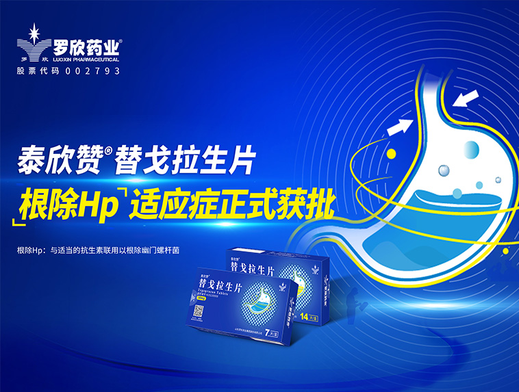 羅欣藥業(yè)創(chuàng)新藥替戈拉生片(商品名:泰欣贊?)新適應(yīng)癥“與適當(dāng)?shù)目股芈?lián)用以根除幽門(mén)螺桿菌”獲批上市